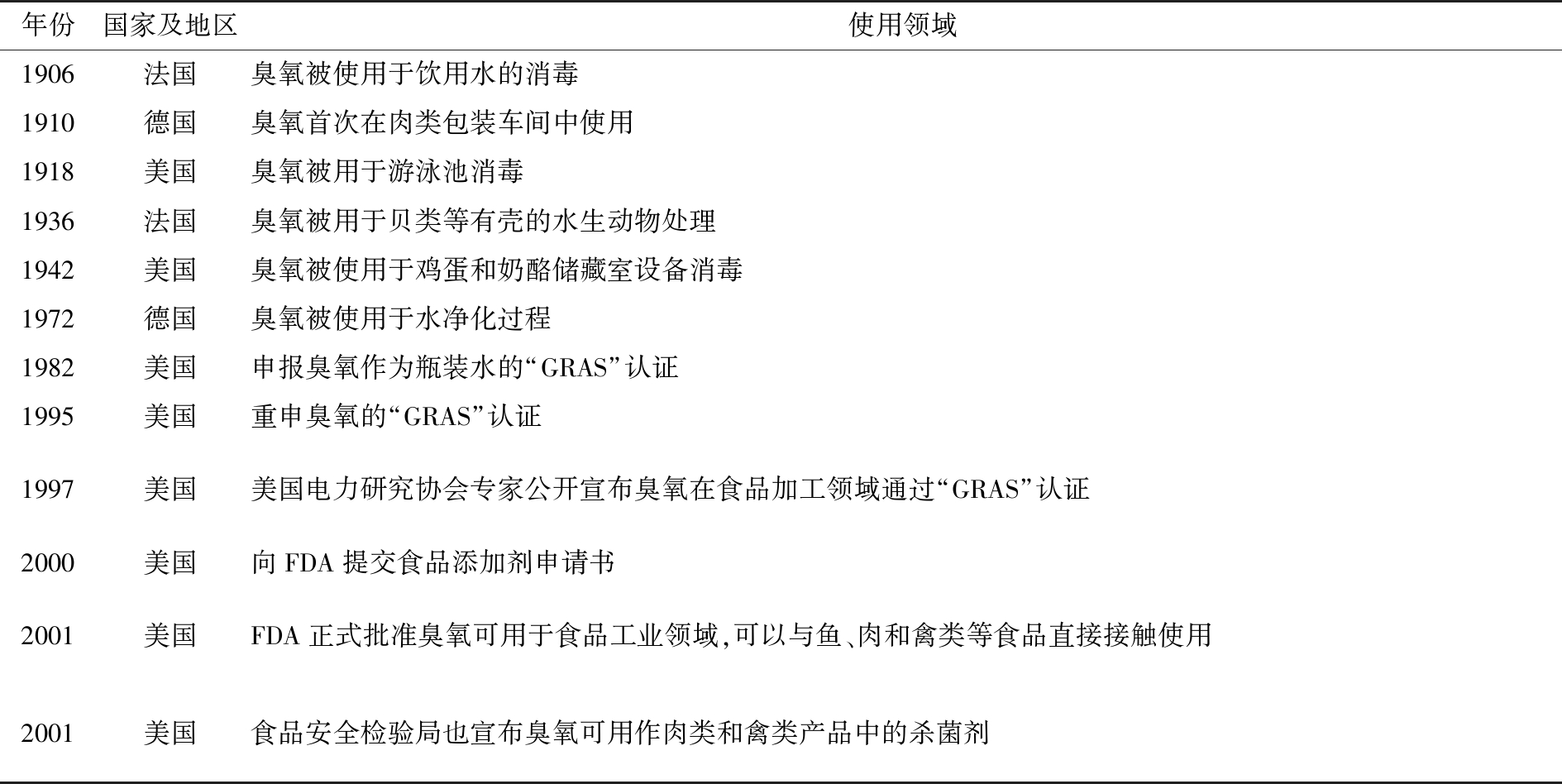 表1 臭氧在水處理和食品領(lǐng)域應(yīng)用簡史[1]
