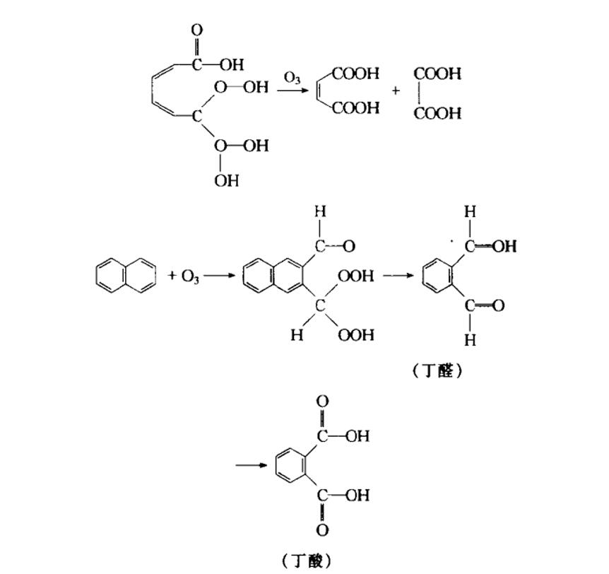 臭氧在水溶液中與有機(jī)物的反應(yīng)極其復(fù)雜,下面僅以大家公認(rèn)的幾種反應(yīng)式列出以供參考。