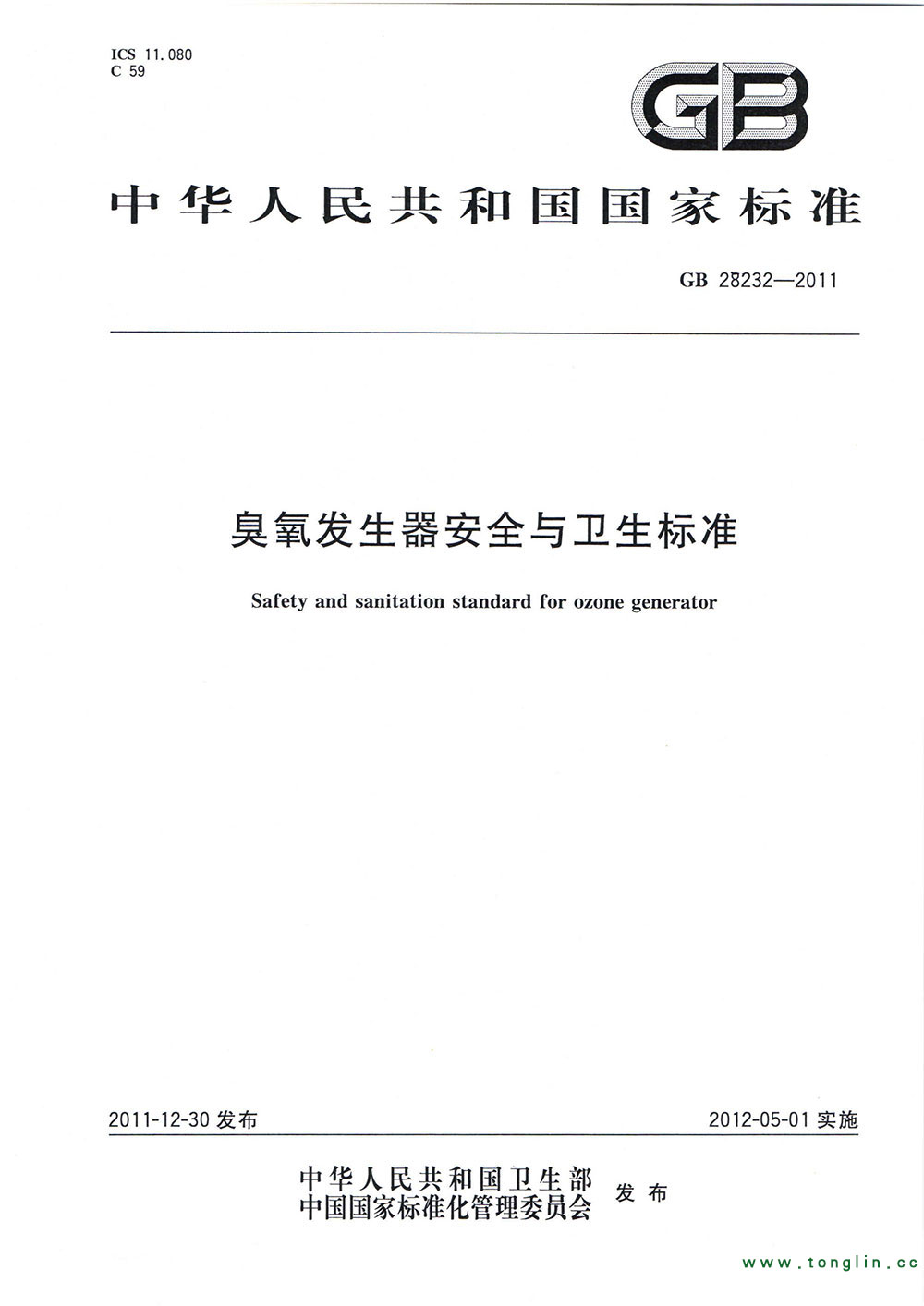中文標準名稱: 臭氧發生器安全與衛生標準